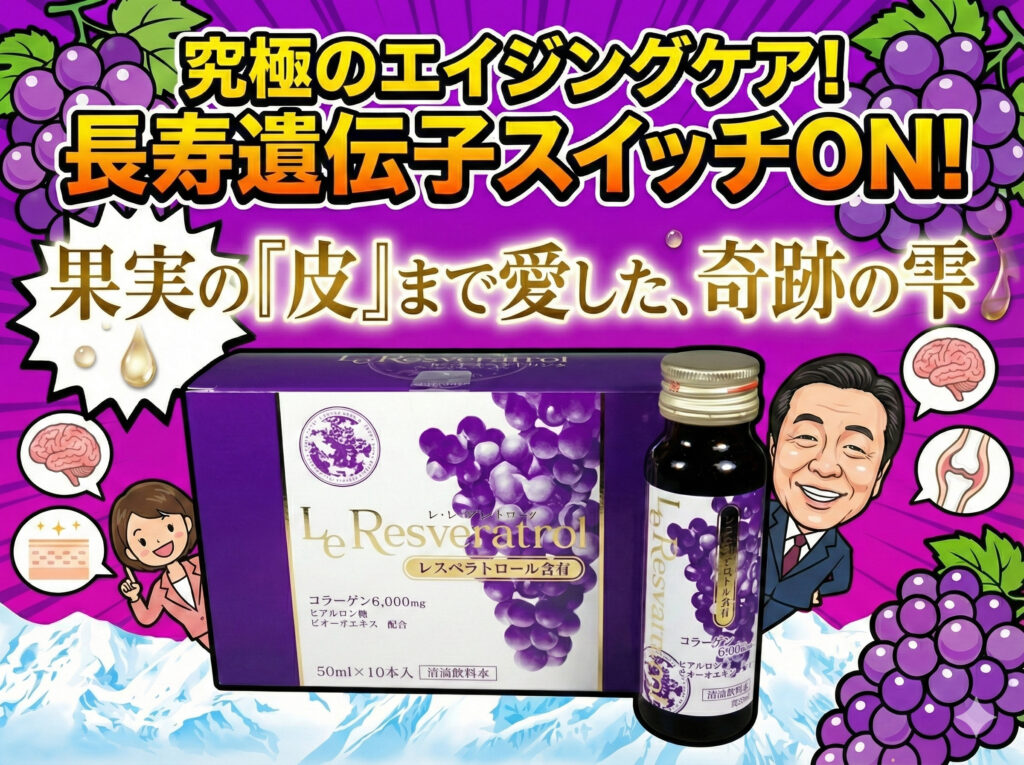 このレ・レスベラトロールは飲む化粧品と言われる最高級の健康美容ドリンク。